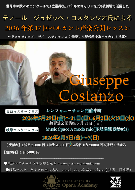 【2026年度 ジュゼッペ・コスタンツオ ベルカントマスタークラス】
